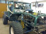 Nu har ja hittat garaget igen o lyckas få lite gjort.... Har monterat nya styrstagen som är väldans mycke kralligare än orginalet! Passade oxå på att flytta styrdämparen som orginal sitter bakom framaxeln längst ner på paralell-staget... Den har gått sönder av sten o stubbar varje gång man åkt i skogen... dyrt i längden! Nu gjorde jag ett nytt fäste i rambenet ovanför främre styrstaget istället o ett fäste på styrstaget.. Alltså hög placering istället nu o mera skyddad men samma funktion! Provkörde med suveränt bra vägegenskaper med en bil som faktiskt känns ok i ratten nu!!! Tyvärr kassa bilder men alltid nåt...