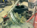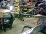 Här en bild på skrothögen som bildats redan samt bakaxeln innan den sattes ihop igen.