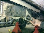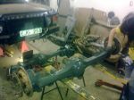Svetsade dit länkarms-fästena på axeln o sen fick den prova platsen den ska bo på senare.... Har demonterat fästena som sitter på ramen o tänker flytta fram dom 35 cm samt förlänga länkarmarna lika mycke... Då blir det mindre brytning i bussningarna samt möjlighet till mer flex bak! Se bilderna.