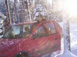 Idag hade jag kul i skogen! Uffe blev uppringd av jaktlagets chef som hade lite problem. Dom har haft en traktor förut som varit behjälplig med allehanda saker inom jaktens område. Och nu har dom fått massor av problem Med rådjur! Dom har tagit sej in överallt och käkat upp vad dom hittat. Så Uffe och jag fick frågan om vi kunde tänka oss att köra ut mat i skogen till dom små vit-rövade odjuren så dom hittar hem igen. Klart vi kunde göra det! Det var spännande att köra omkring där vi aldrig varit förut, och det i flera decimeter snö dessutom! Vi fick några bra tips på fina ställen där det var okej att köra- skoj!!!